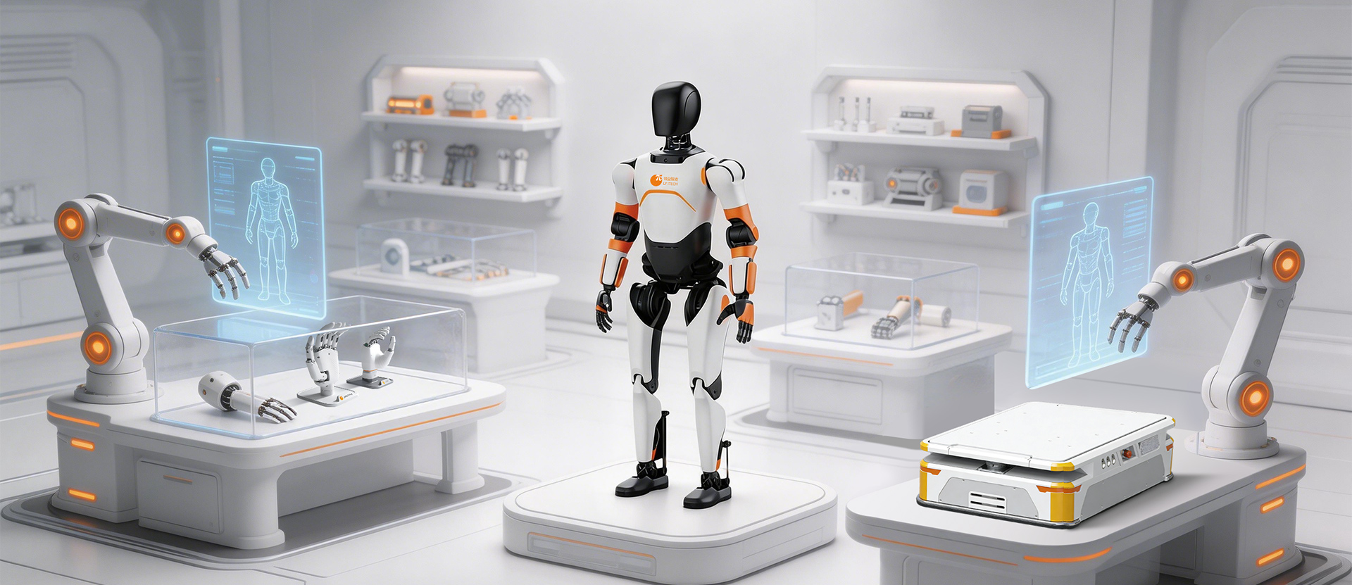 技术亮点:· 专为轮式人形机器人设计的智能 360° 全向移动底盘,集成即插即用的上装接口,可快速适配各类人形 / 双臂上肢模块。· 基于 ROS2 开发,具备高精度导航与避障能力,支持平稳行走、转弯、原地旋转、蟹行、斜行、爬坡、越障等运动能力。· 高度模块化设计与开放开发平台,帮助开发者专注上身研发应用,大幅缩短研发周期。