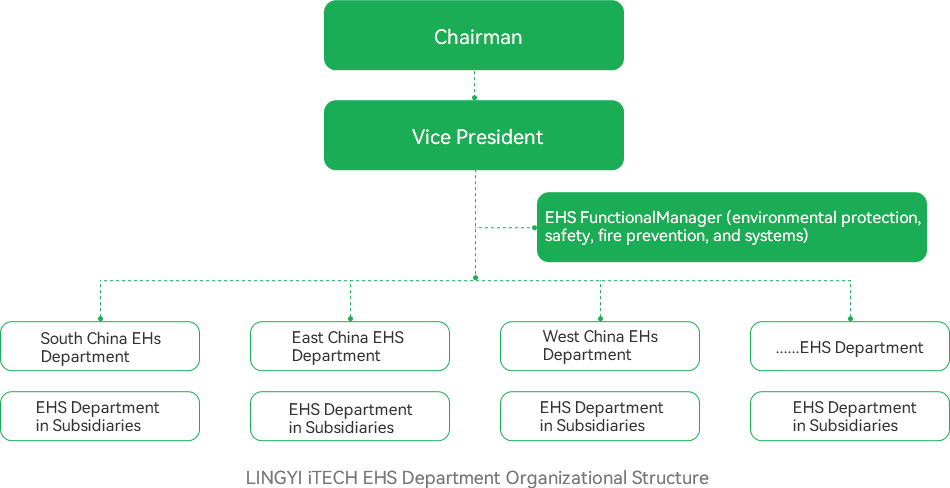 The establishment of the EHS organizational structure follows the principle of unified supervision by the group and supervision and implementation by each subsidiary, aiming to build a management mechanism that operates in coordination with the production and operation unit being responsible, employee participation, government supervision, industry self-discipline and social supervision.